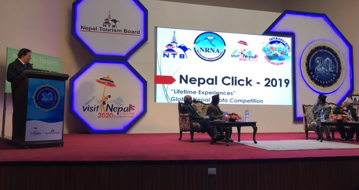 We are immensely pleased to announce that NRNA and Nepal Tourism Board are jointly organizing 'Nepal Click 2019' - a Global Photo Competition. The competition was formally inaugurated by Honorable Rabindra Adhikari, Minister for Culture, Tourism and Civil Aviation by unveiling a photograph taken by a veteran photographer of Nepal, at the 20th anniversary celebration of Nepal Tourism Board. This competition is being organized to support Visit Nepal 2020 campaign with the theme 'Lifetime Experiences'.